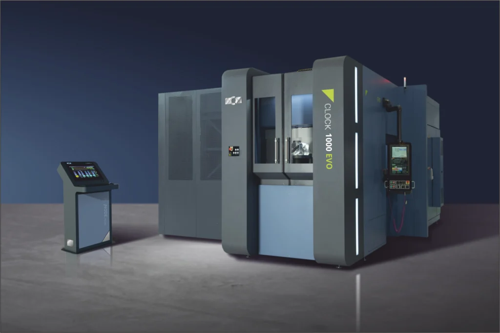 CLOCK 1000 EVO è il centro di lavoro orizzontale intermedio della linea CLOCK EVO, caratterizzato da una cubatura di 1.000 mm e dalle dimensioni del pallet: 630x630mm, 630×800 mm, oppure Ø 800 mm.